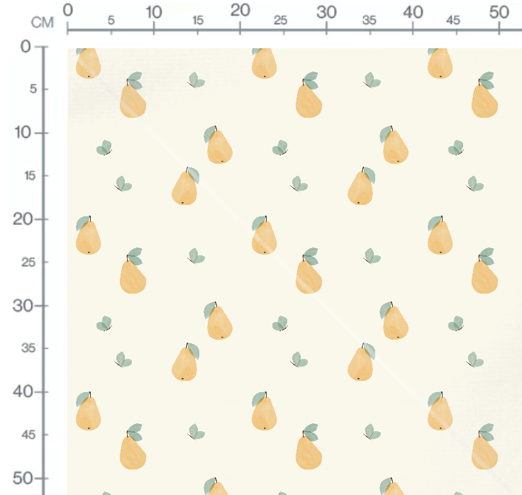 Kriaušių rašto audinys, kuriame dera žaismingumas, švelnumas ir natūralus vaisiškas gaivumas. Šis kriaušių motyvais puoštas raštas kviečia kurti nuotaikingus, jaukius ir stilingus kūrinius – tiek vaikams, tiek suaugusiems.